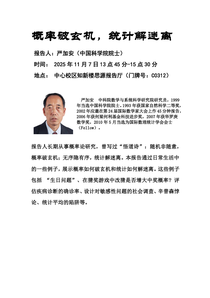 报告题目:概率破玄机,统计解迷离