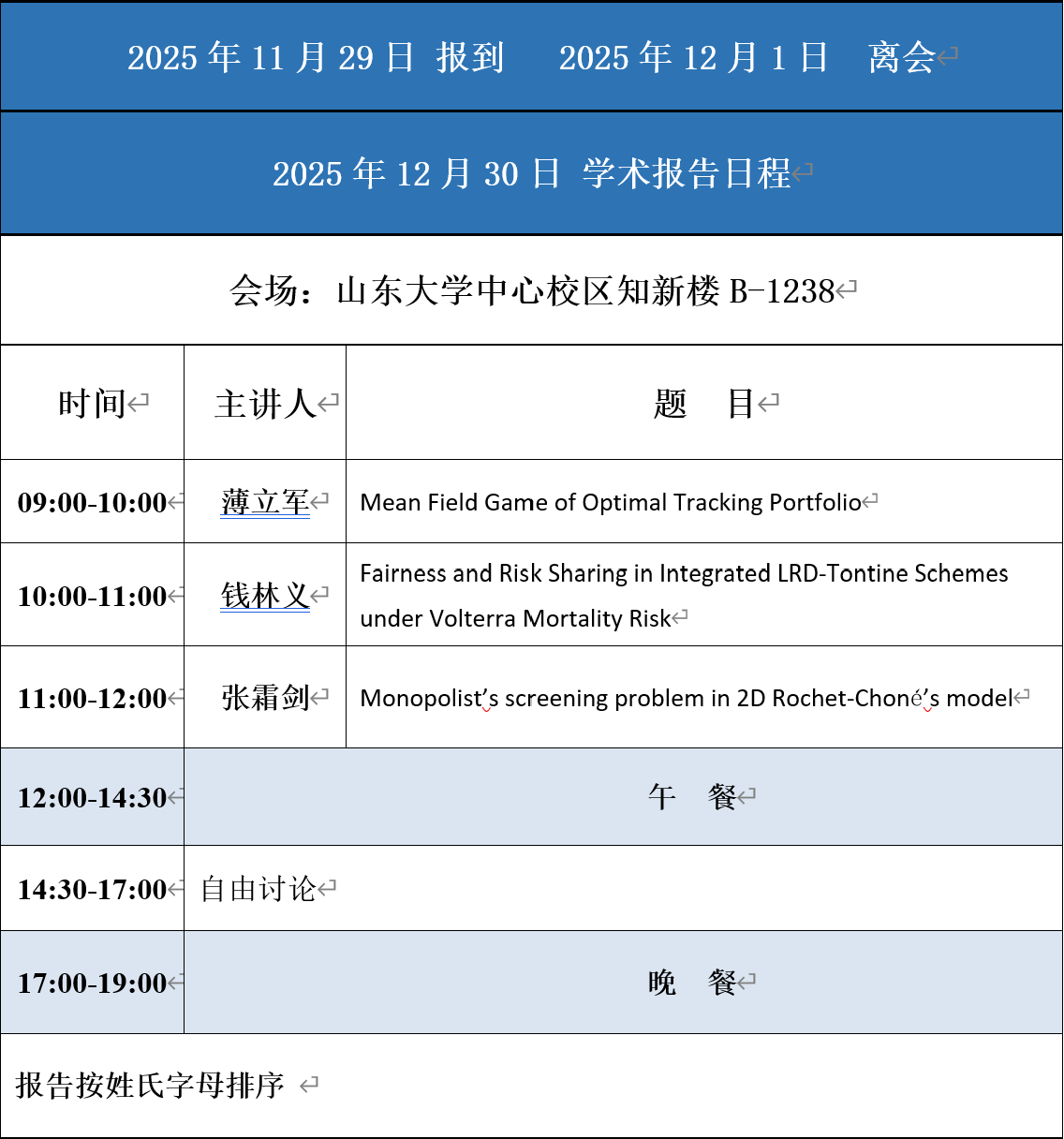 会议名称:金融数学、保险精算及非线性期望研讨会