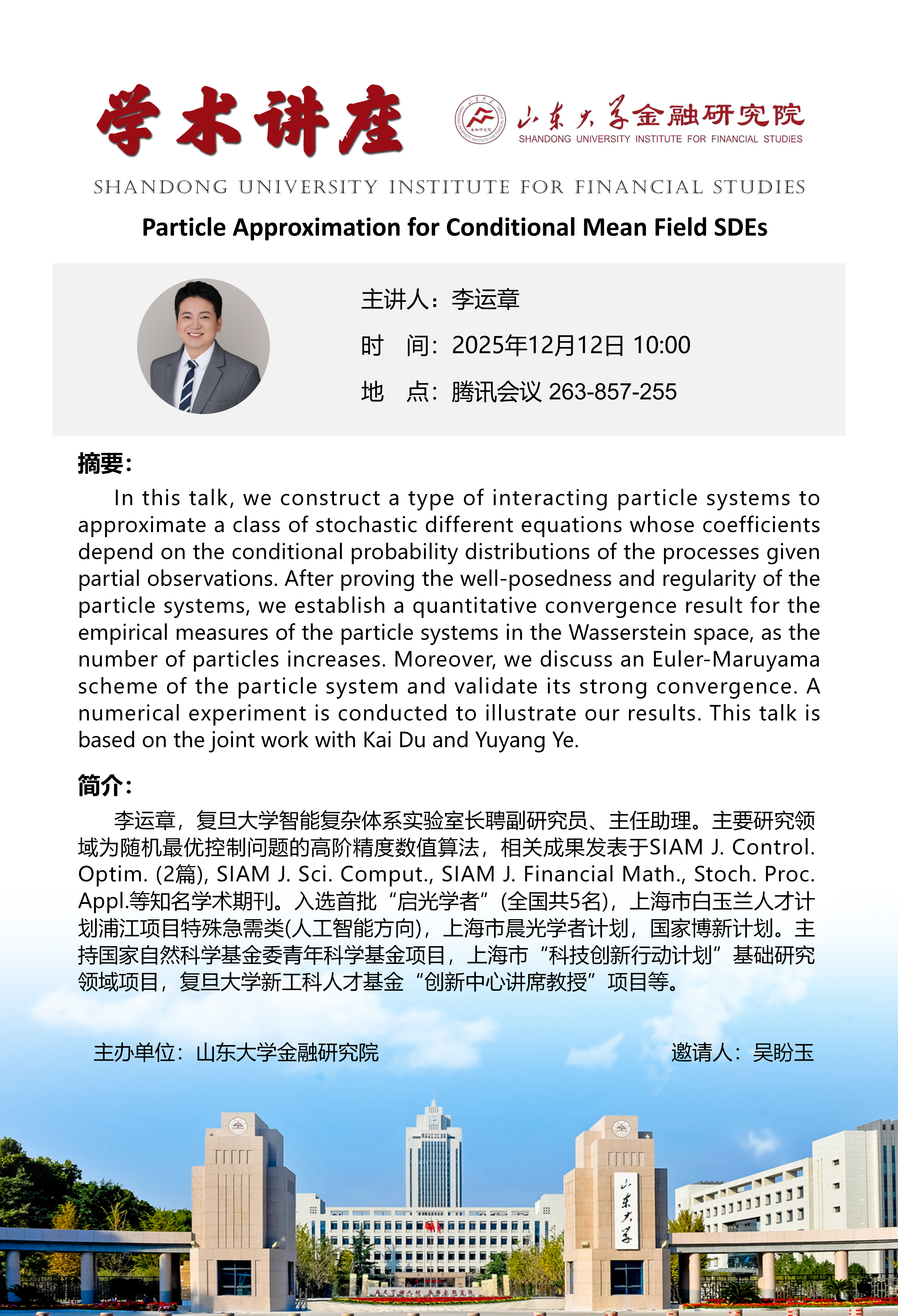 报告题目:Particle Approximation for Conditional Mean Field SDEs