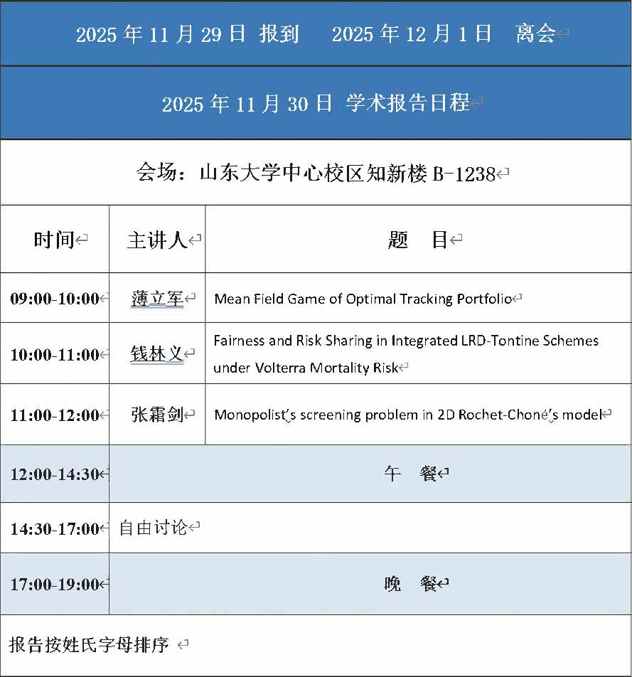 会议名称:金融数学、保险精算及非线性期望研讨会